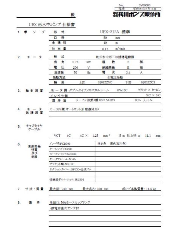 ポンプ仕様書