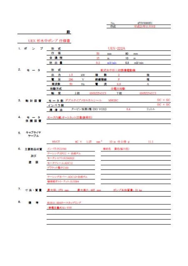 ポンプ仕様書