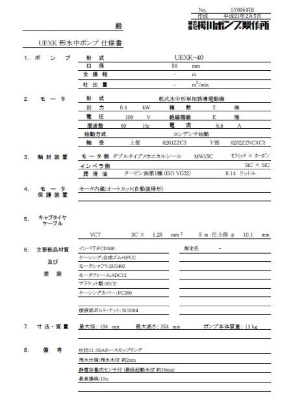 ポンプ仕様書