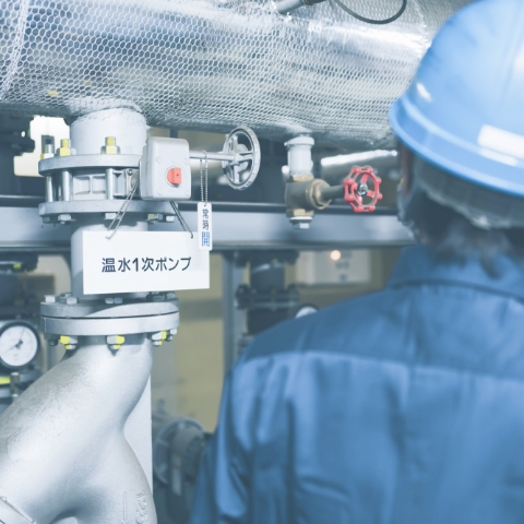 施設の維持管理業務として設備の点検・整備作業を行い、施設の安全運転支援をしています。