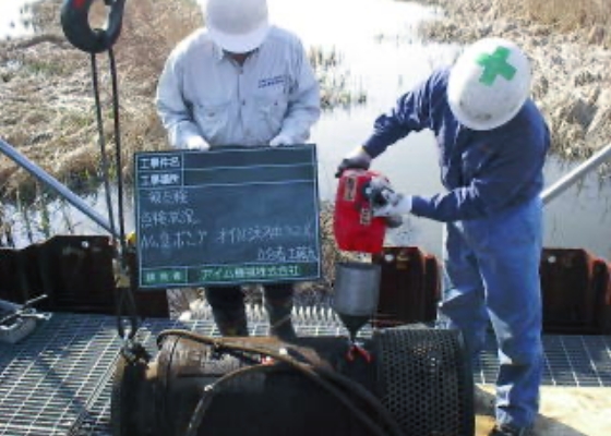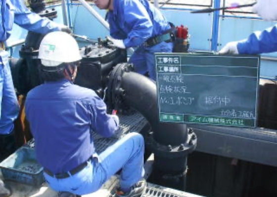 施設の維持管理業務として設備の点検・整備作業を行い、施設の安全運転支援をしています。 水中ポンプ等の修繕作業は迅速な対応を行えるように業務を推進しています。